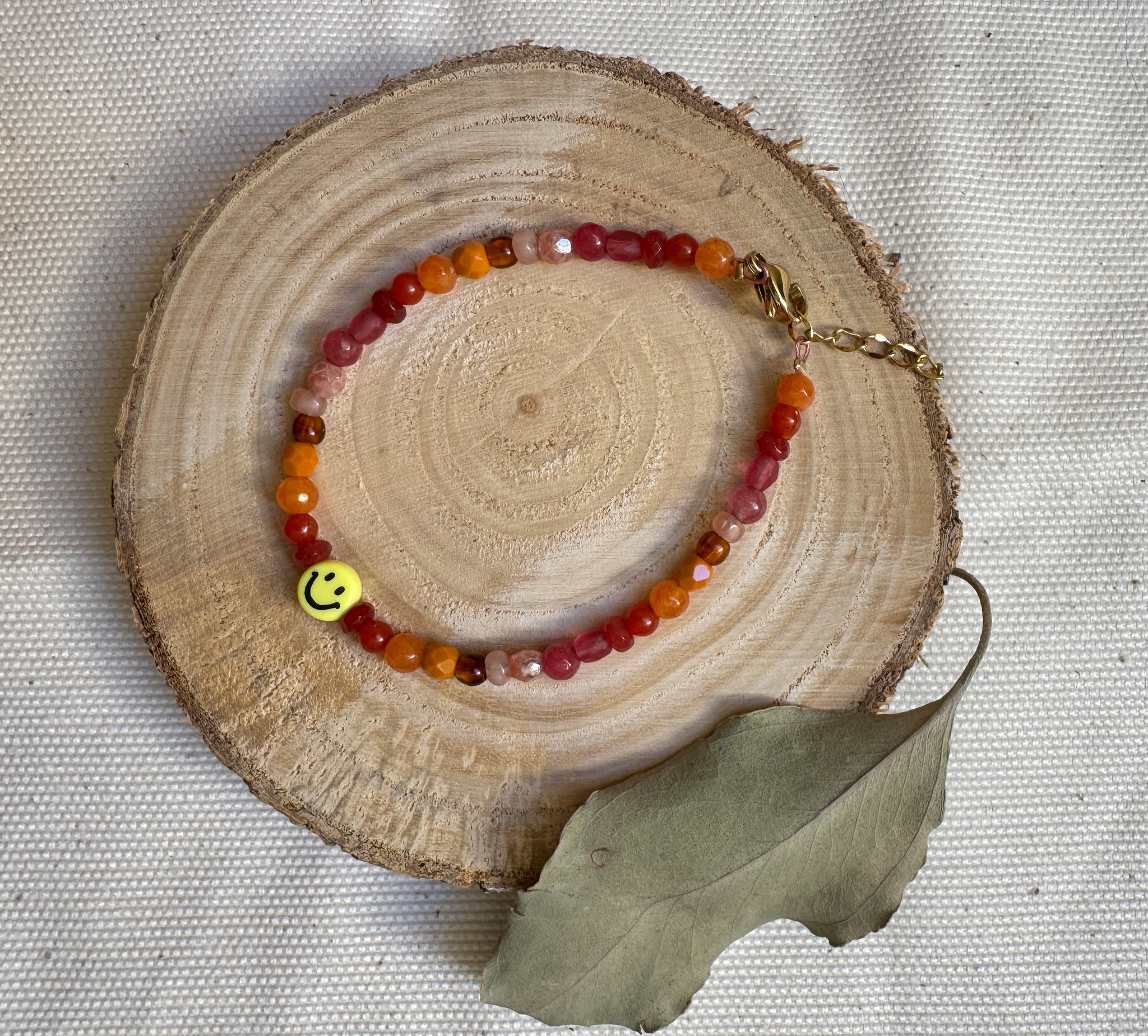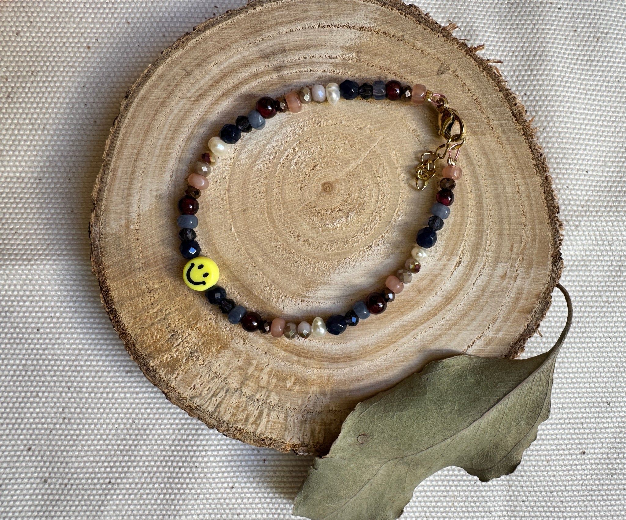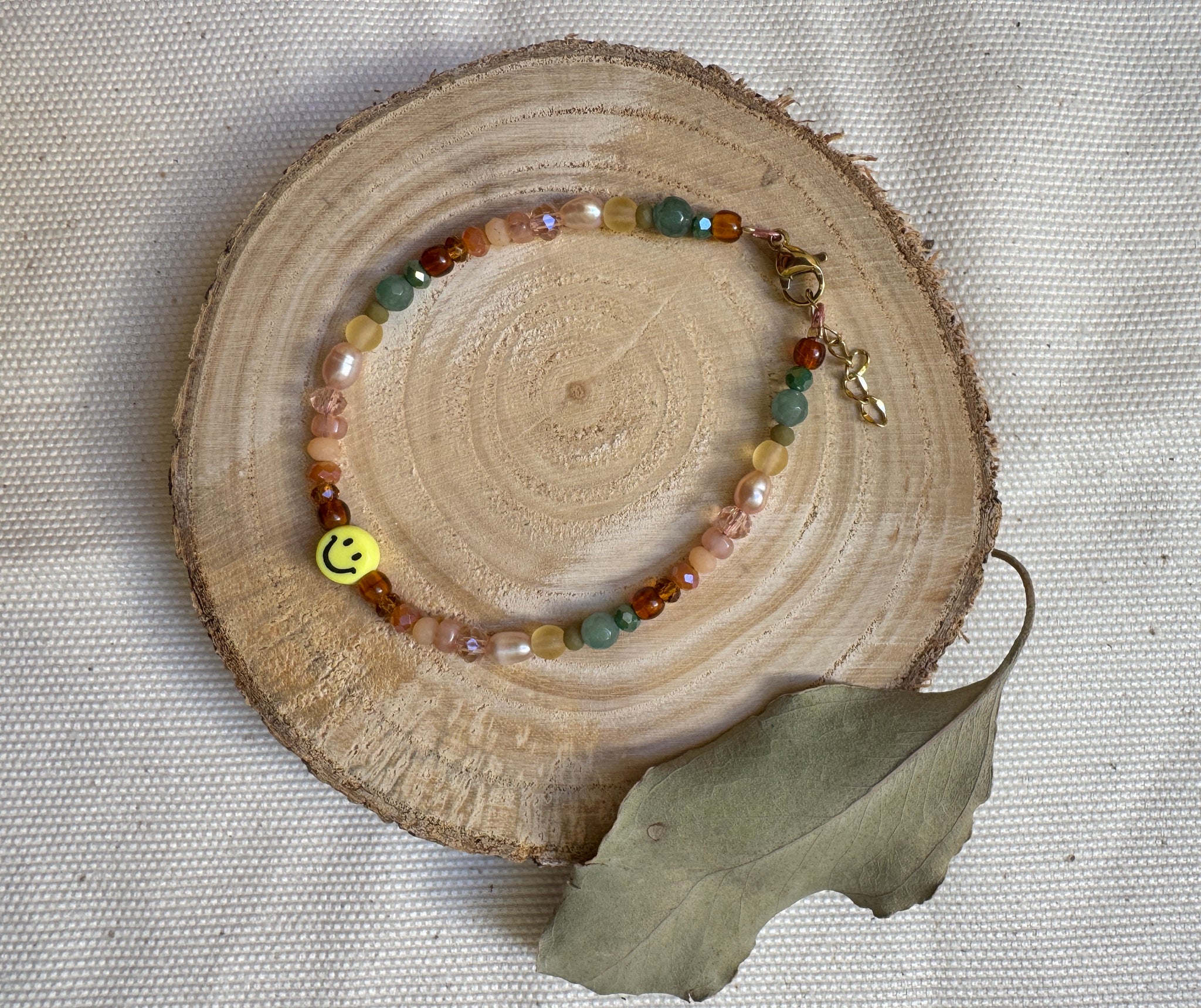 Bracciale realizzato con un mix di perline dai colori autunnali e al centro uno Smiley sorridente.
