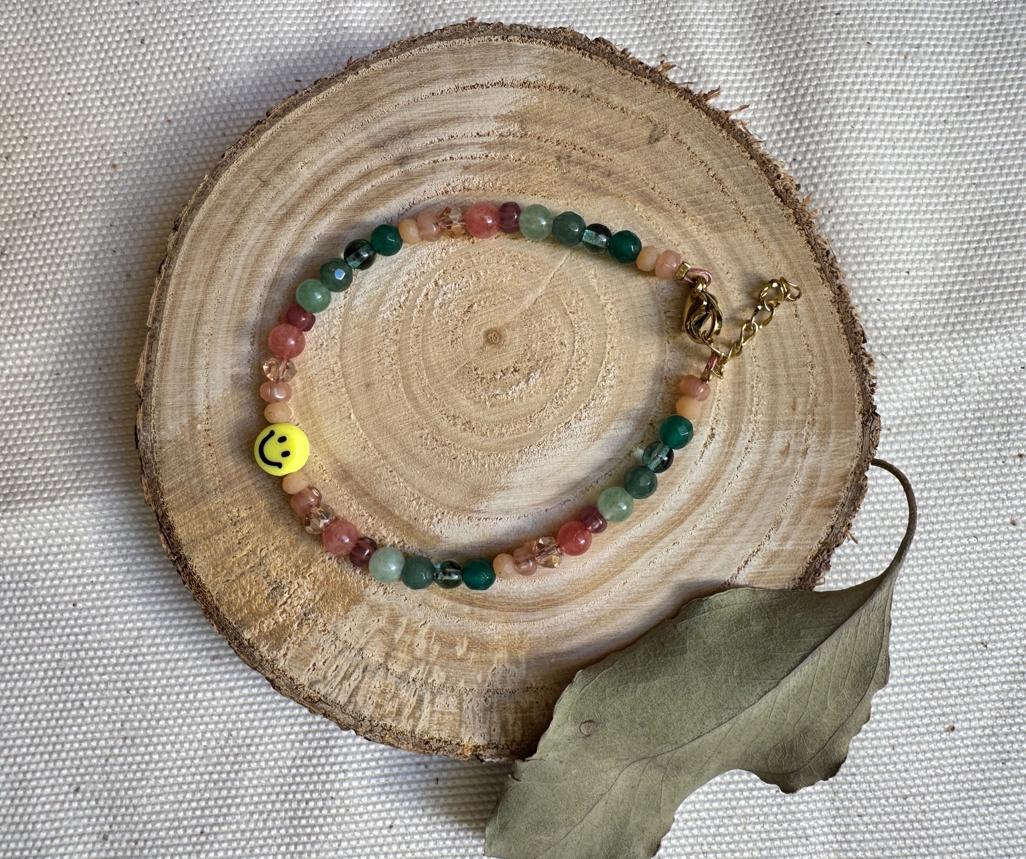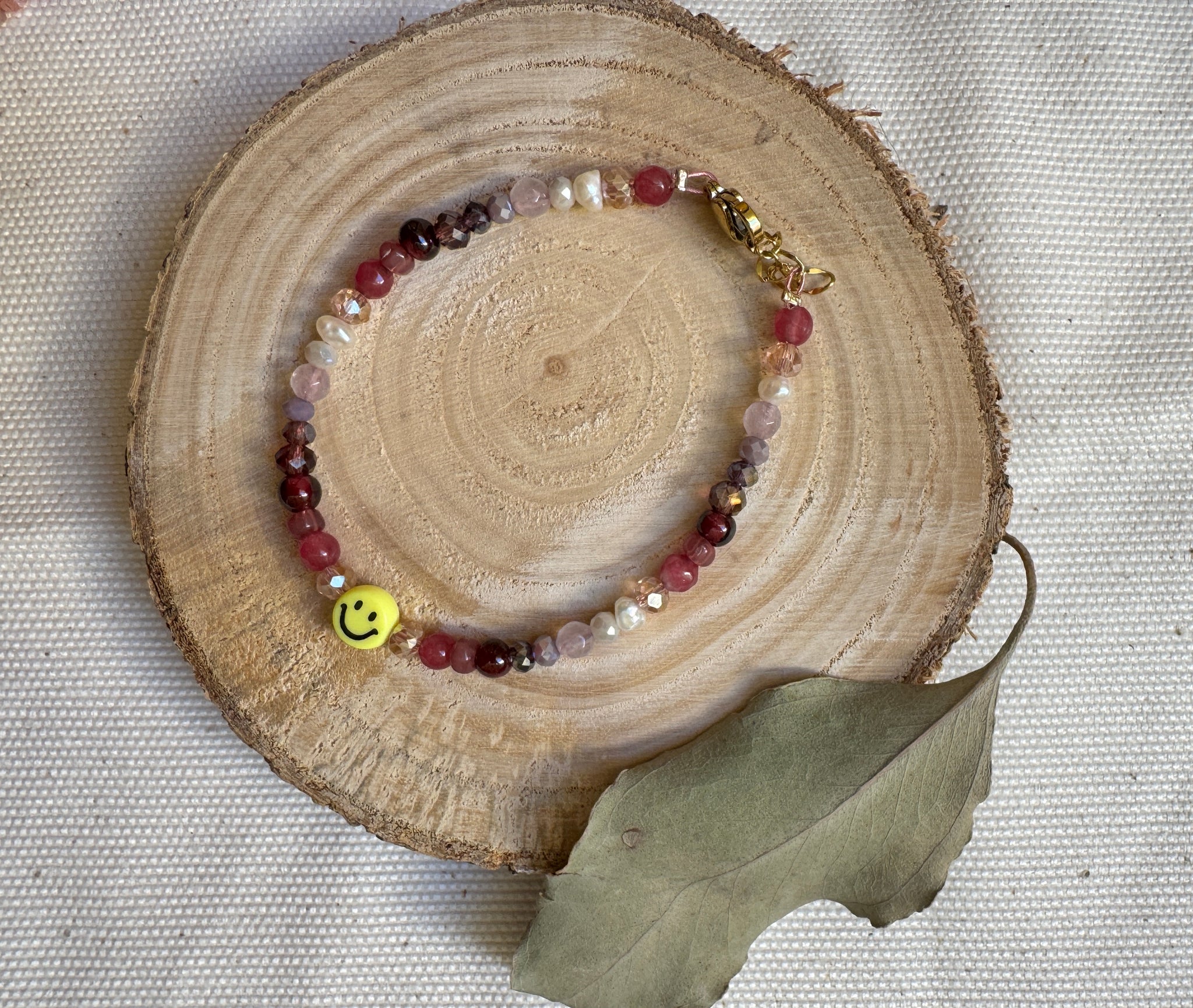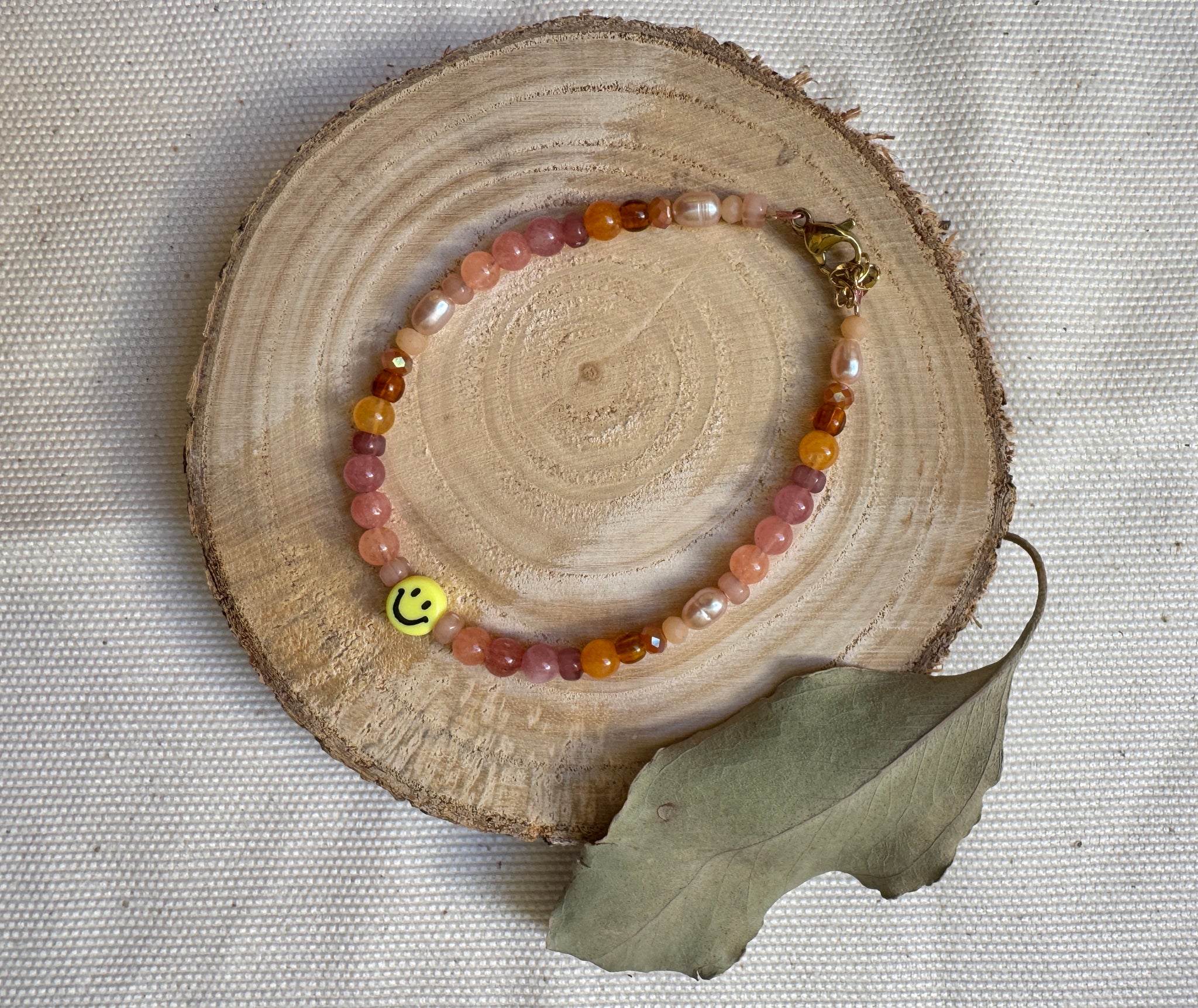 Bracciale realizzato con un mix di perline dai colori autunnali e al centro uno Smiley sorridente.